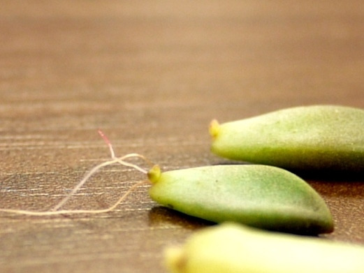 乾いた土の上に転がしておくと芽や根が出てきます。