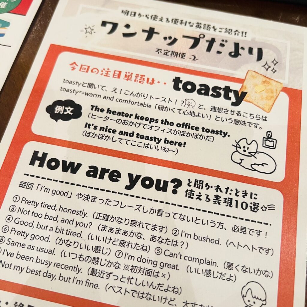 「最近これ覚えた!」「これ知らなかった〜!」「こういうとき言えばいいのかわからない‥」「こう聞かれると困ってしまう」などいろんな話題が出てきます。