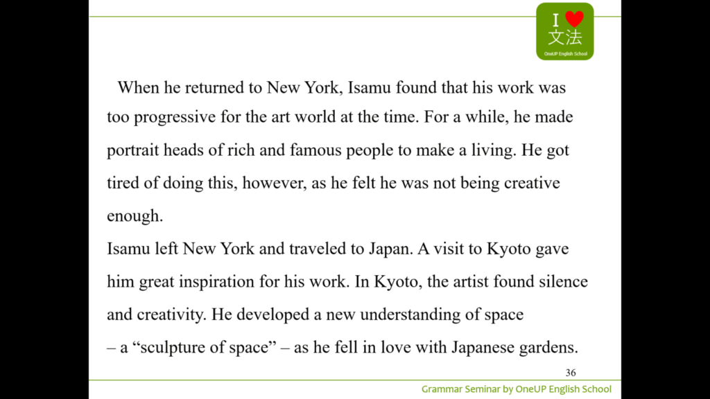 TOEICスコアアップにも役に立つ、中級者が次のステップに上がる時に効果的な講座です。講座の後半では長文読解に挑戦しながら実際の文章に使われる分詞を確認し理解を深めます。