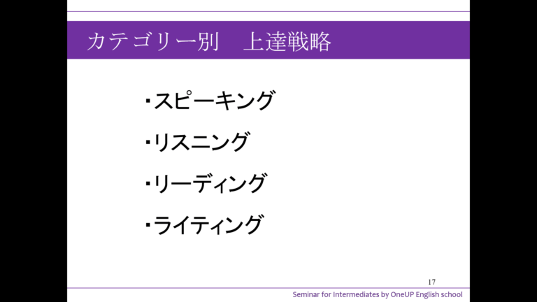 多くの中級者がスピーキングを伸ばす上でぶつかるポイントについて解説し、その乗り越え方までを指南。すぐに使えるスピーキングのテクニックや中級者ならではの4技能の学習方法を紹介。